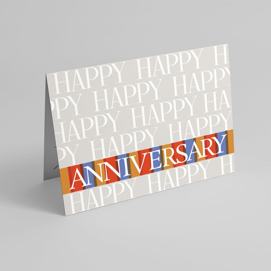 Graphic Anniversary Card with Repeating 'HAPPY' Pattern